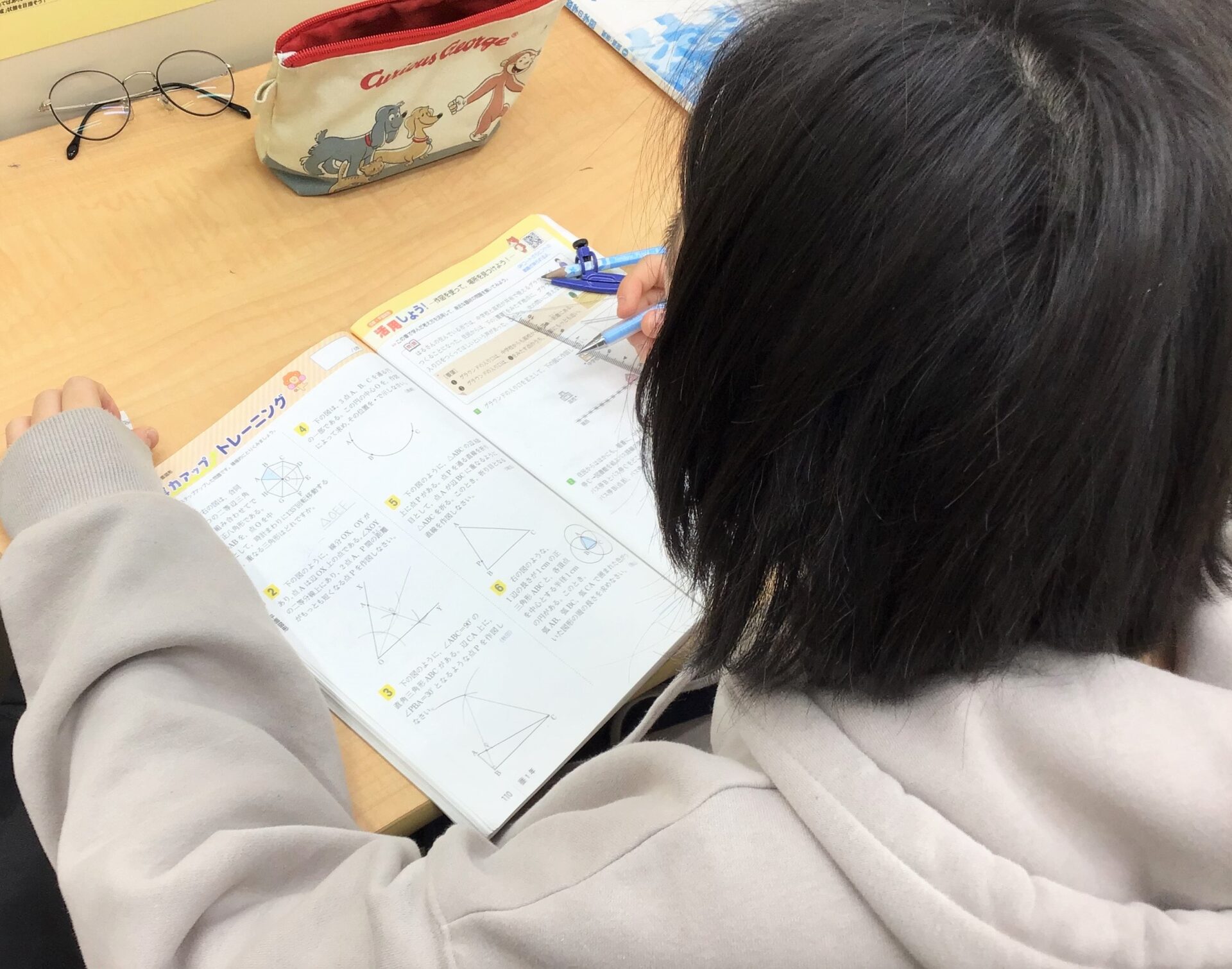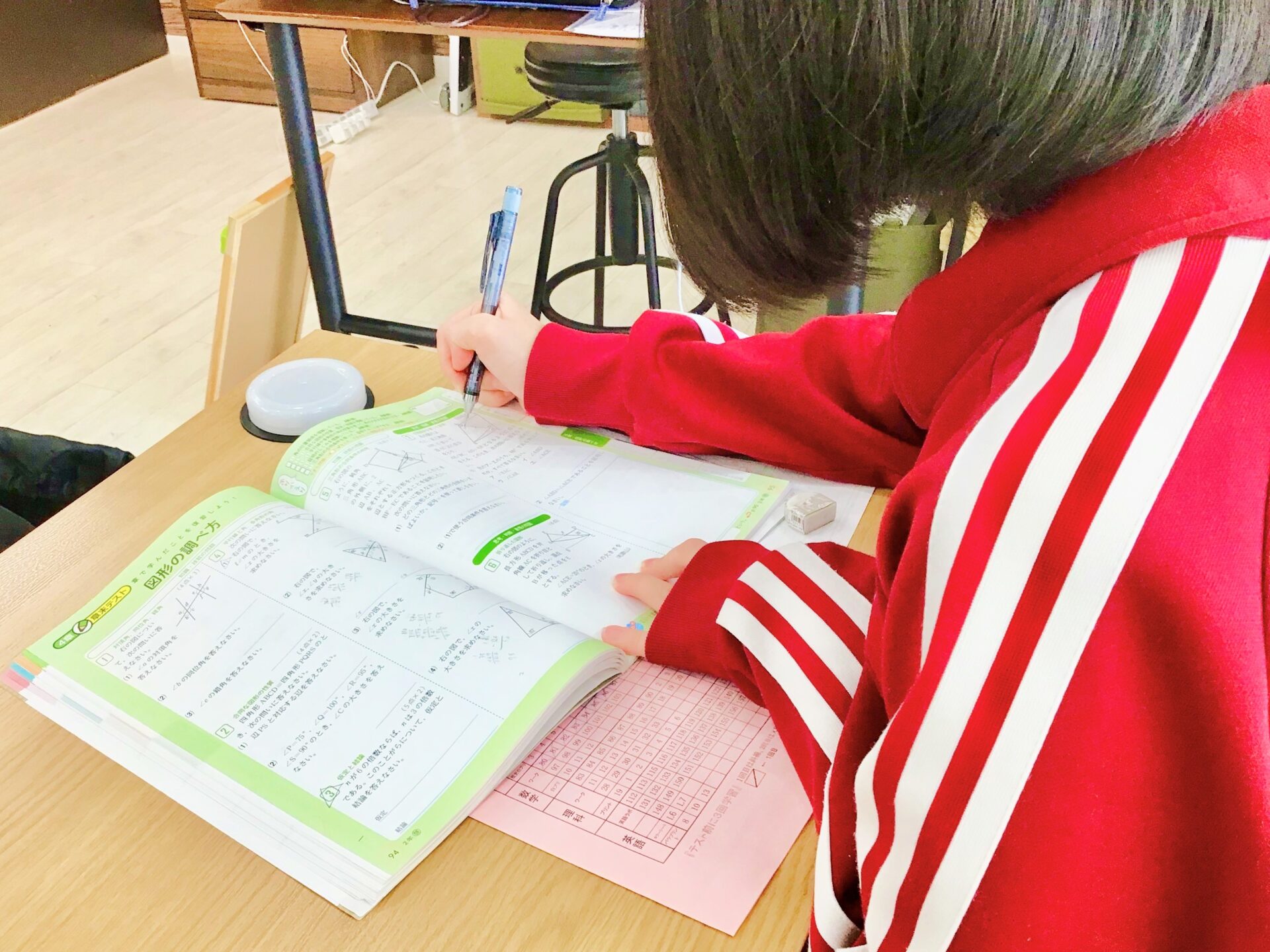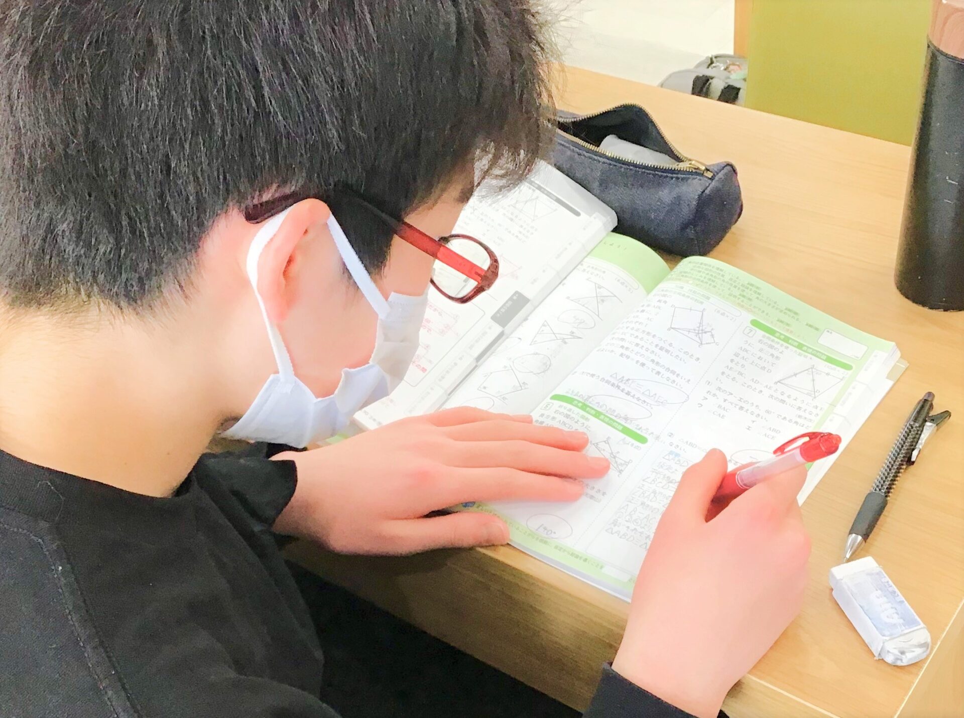 朝から夕方までの合宿で、テスト勉強のために集中して取り組む勉強会です。参加した多くの生徒の中学校でテスト1週間前だったので、ワークの総仕上げをする生徒がほとんどでした。
