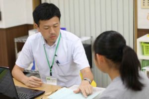 写真は、自分アップデータを使ってテストの目標点や、何をどのくらいのペースで勉強していくかを確認しているところです。毎週の授業の前に必ず行います。