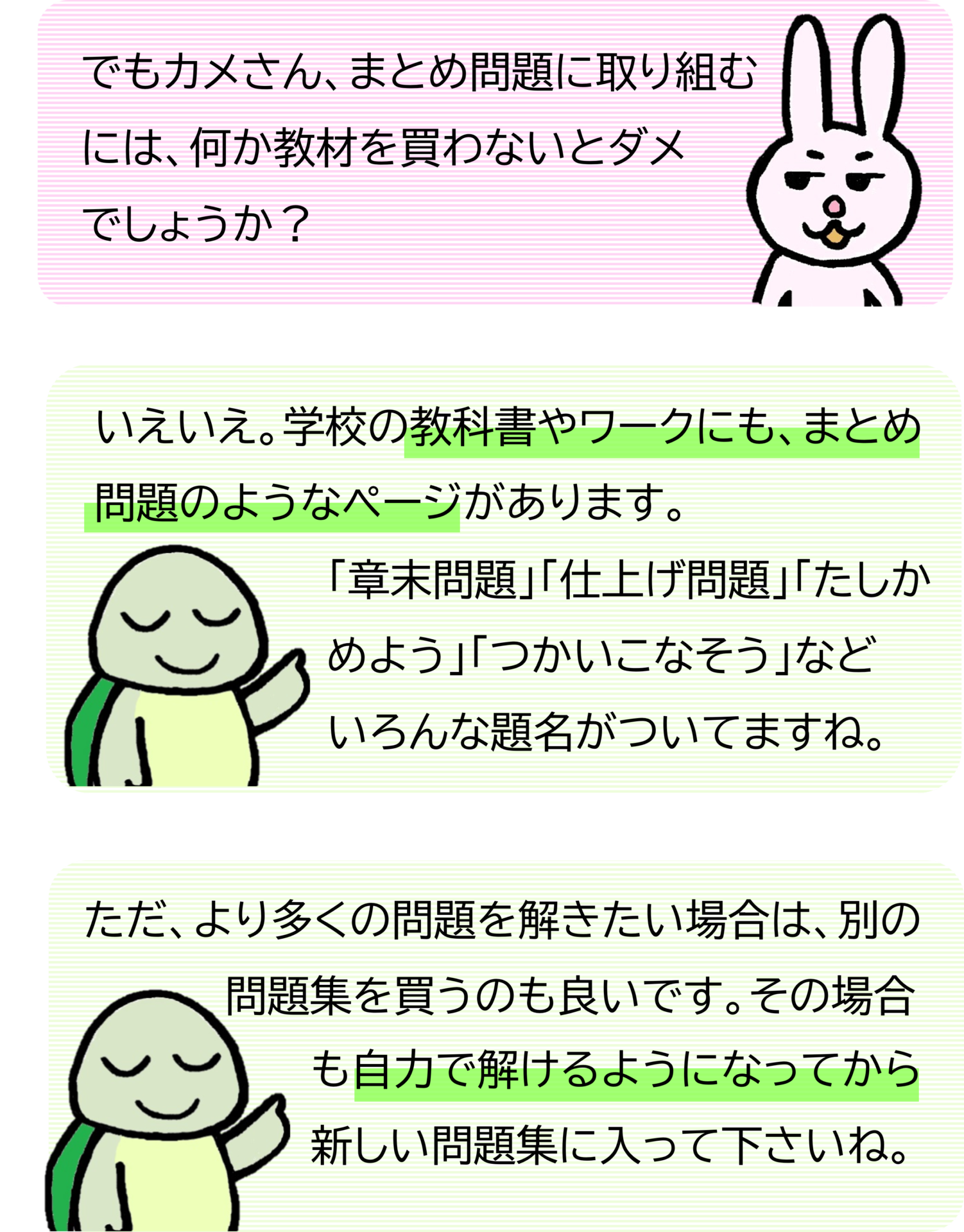 よって、習得できているかどうかを、テストに臨む前に確認すれば良かったわけです。