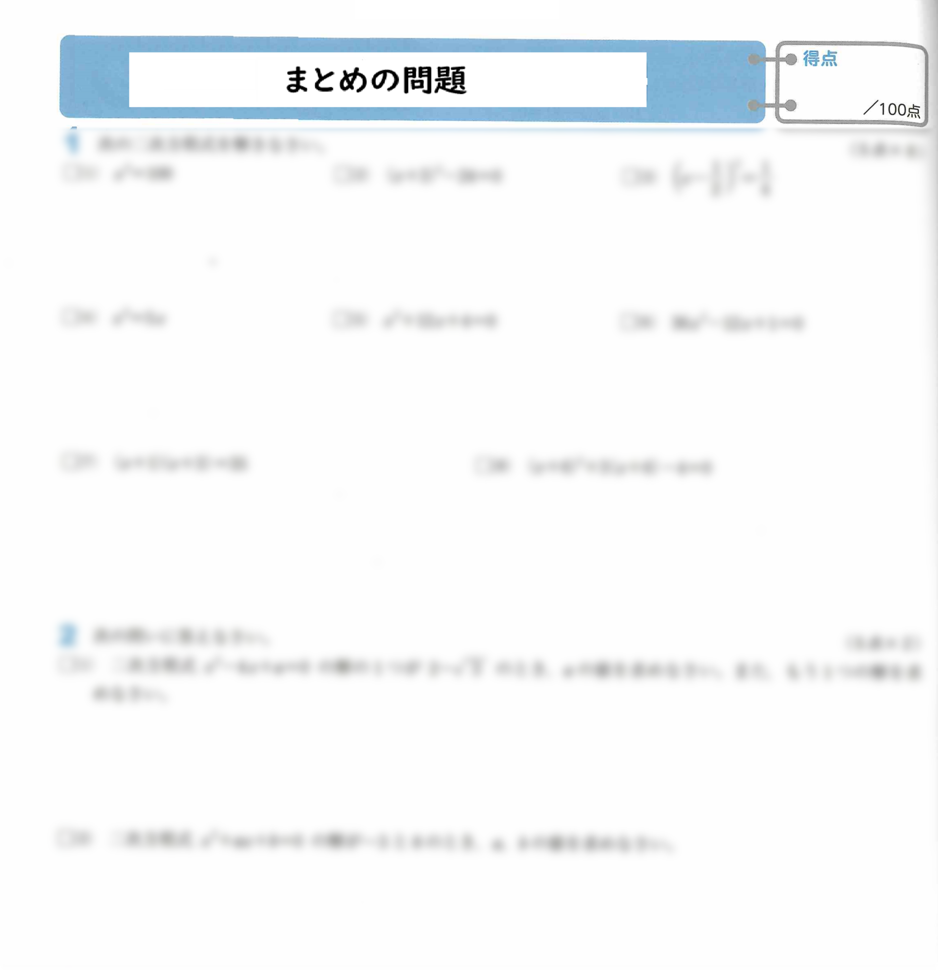 教科書やワークなどの「まとめ問題」です。