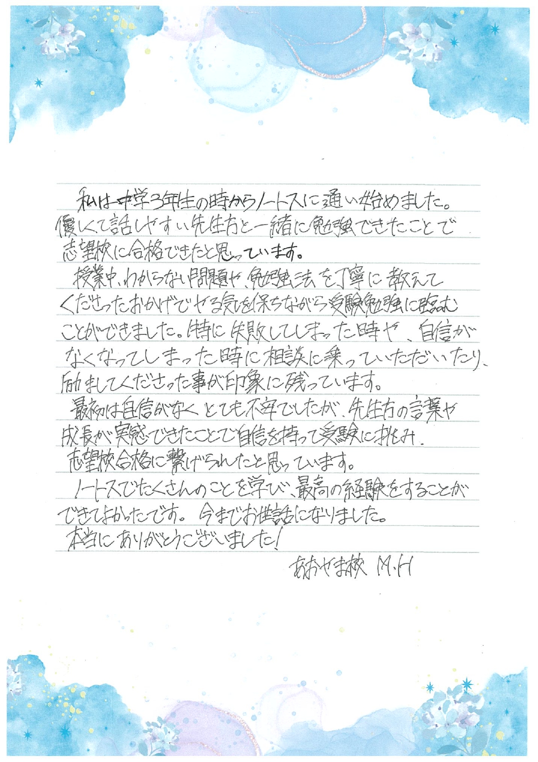 受験生、喜びの声~ノートスあおやま校 Mさん~